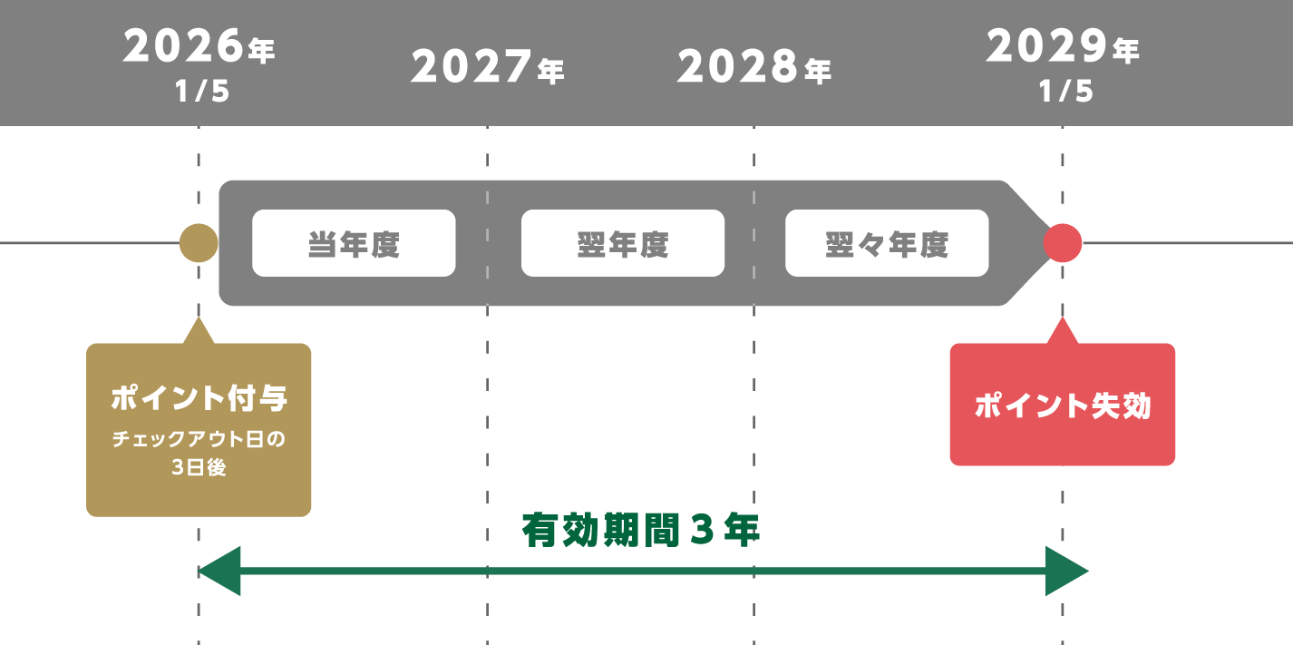 ポイント付与のタイミングは、チェックアウトから3日後の1時になります。
